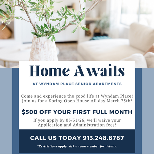 Wyndam Place 55-Plus, Senior Living Apartments, offers one and two-bedroom apartments in Shawnee, KS. Each apartment home includes a fully equipped